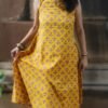 Amaltas Set: Sunny yellow kurta set with playful prints, flared silhouette, and festive charm.