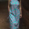 Sleeveless aqua kurta with vivid coral florals, high neckline, and tailored fit — a blend of fresh femininity and effortless elegance.