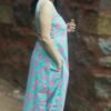Immerse yourself in resort-inspired elegance with this sleeveless kurta, featuring vivid coral florals set against a cool aqua base. The high neckline and tailored silhouette offer a refined balance to the playful botanical print, making it perfect for sunlit brunches or evening getaways. A statement in effortless luxury and fresh femininity.