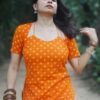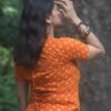 vision in burnt orange, this corset-back kurta marries heritage charm with a touch of modern drama. The diamond motifs dance like little jewels across the fabric, while the cinched lace-up back sculpts a silhouette that’s equal parts regal and sultry. A piece designed to make everyday elegance feel indulgent.